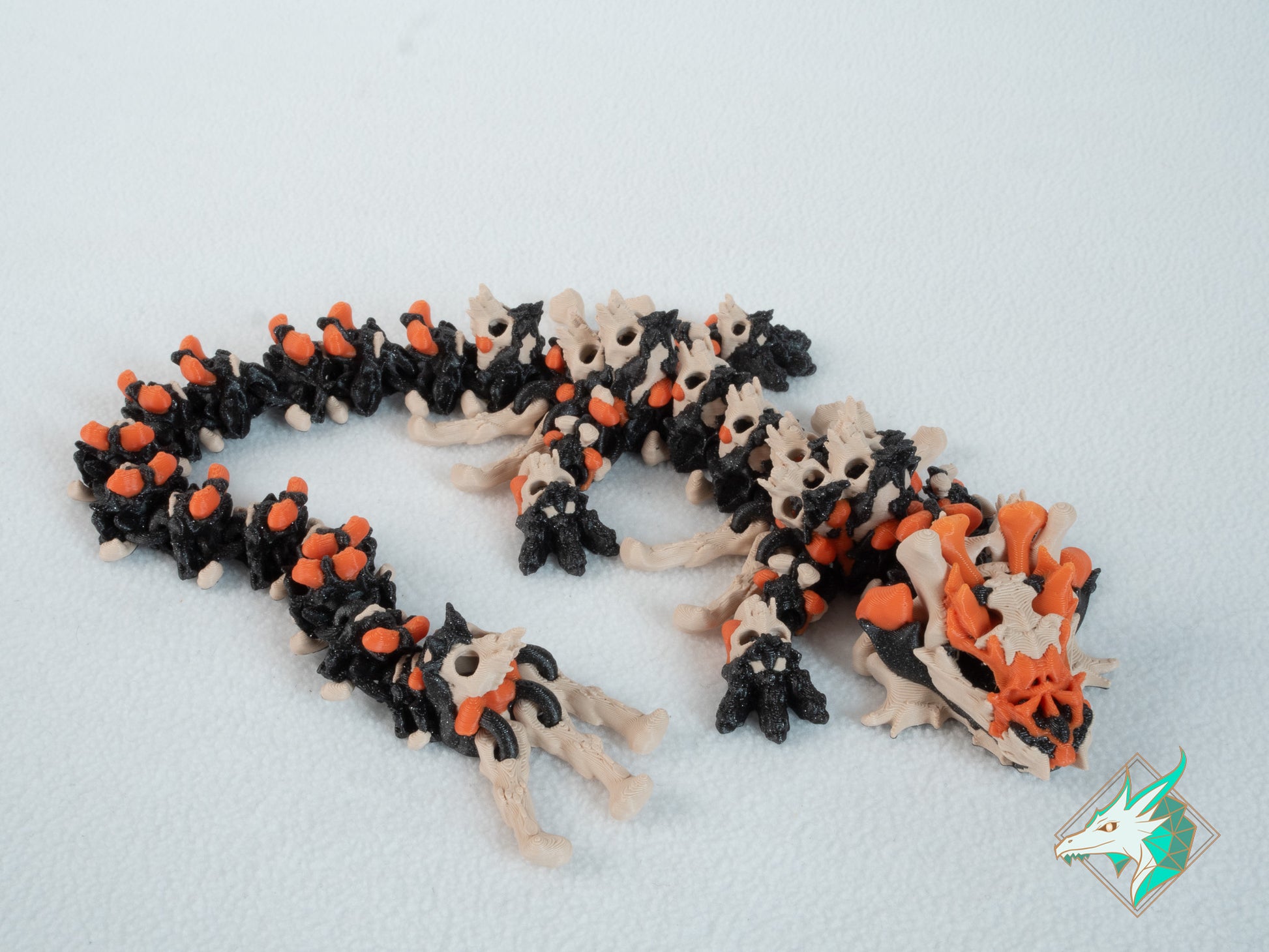 Nos dragons et autres créatures sont imprimés en 3D à la maison en utilisant des matériaux de haute qualité et post-traités à la main. Nous utilisons du polylactide (PLA), un type de plastique fabriqué à partir de ressources renouvelables telles que l’amidon de maïs et la canne à sucre.