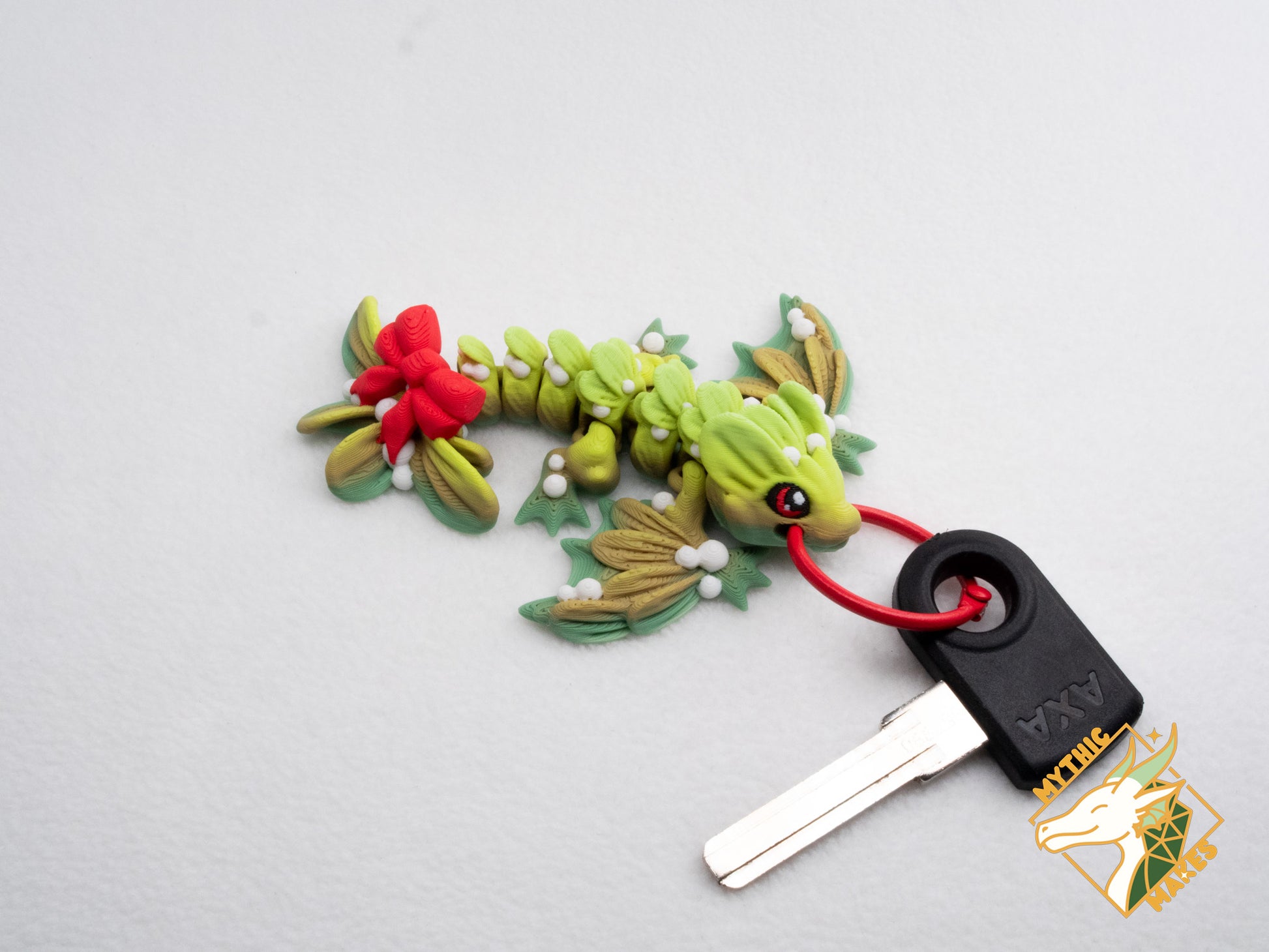 Mistletoe wyverns en winter wyverns met sleutelring. Kan bijvoorbeeld aan een sleutel bevestigd worden, maar ook aan een tas of ander voorwerp of kledingstuk.