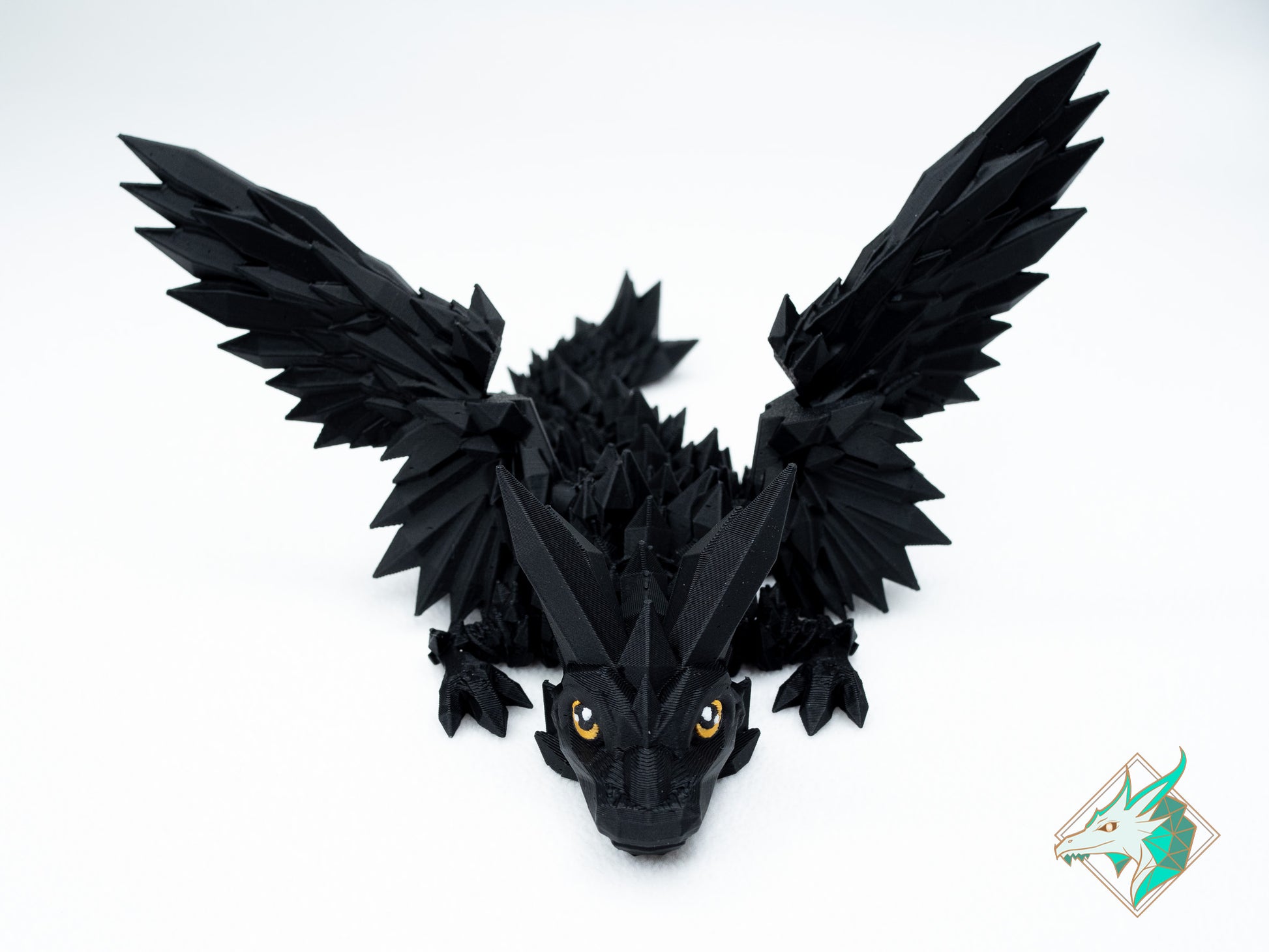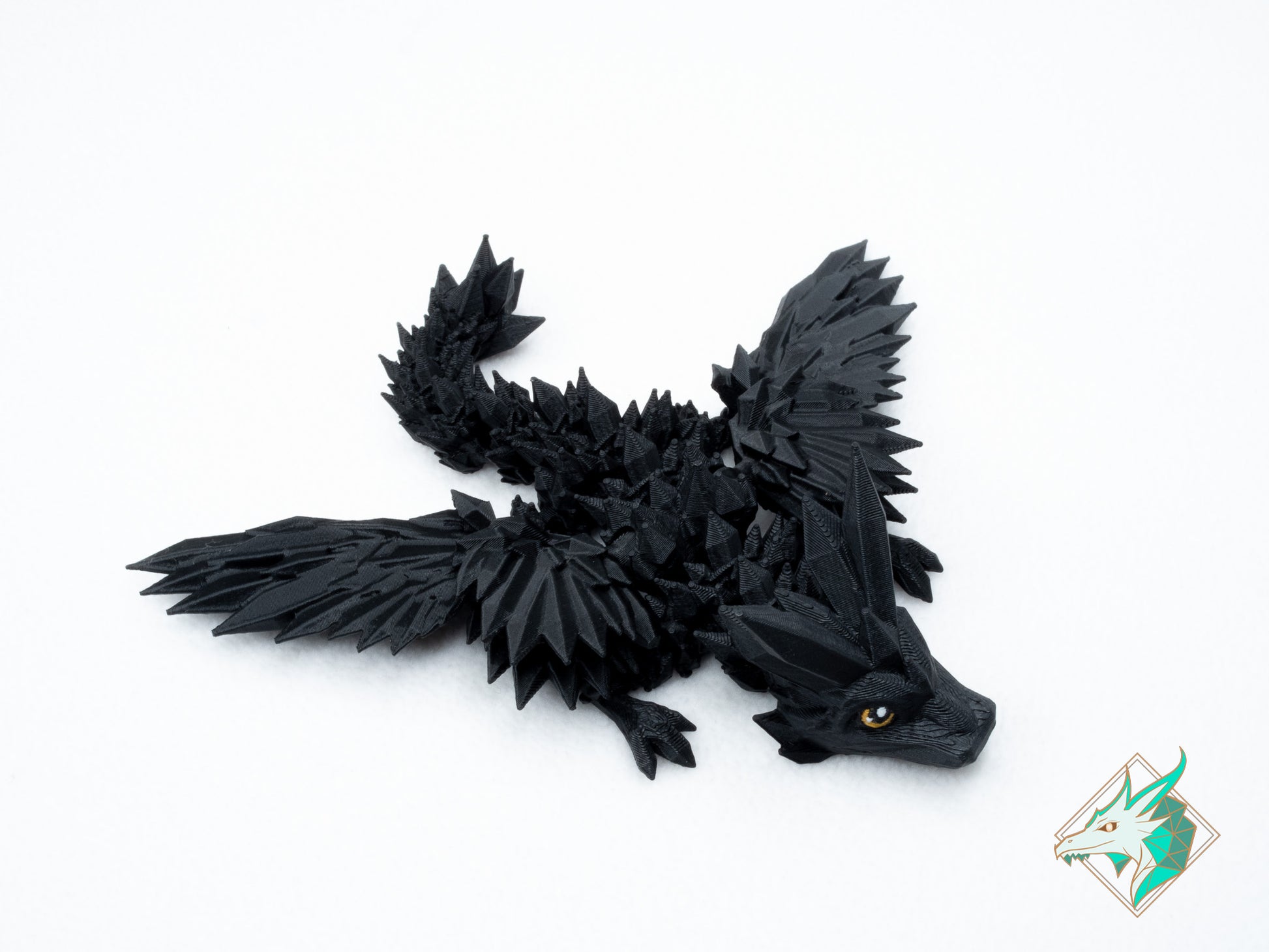 Onze draken en andere wezens worden thuis 3D-geprint met hoogwaardige materialen en handmatig nabewerkt. We gebruiken polylactide (PLA), een plasticsoort gemaakt van hernieuwbare bronnen zoals maïszetmeel en suikerriet.